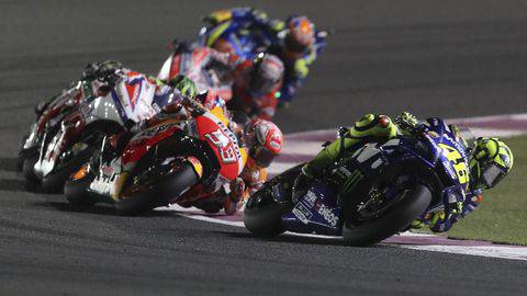 Pebalap Movistar Yamaha Valentino Rossi diklaim harus terpaksa berdamai dengan juara bertahan MotoGP Marc Marquez sepanjang akhir pekan MotoGP Spanyol di Sirkuit Jerez, 4-6 Mei 2018.